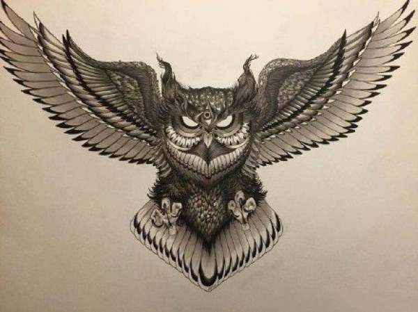几张猫头鹰花胸纹身图案和手稿欣赏