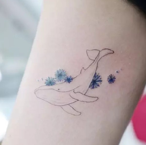 萌萌的鲸鱼纹身--适合女生的小清新鲸鱼纹身图案作品