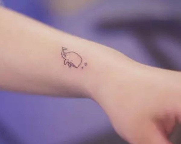 萌萌的鲸鱼纹身--适合女生的小清新鲸鱼纹身图案作品