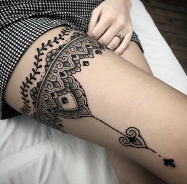 迷人的黑灰色曼陀罗图案纹身来自于纹身师曼纽尔