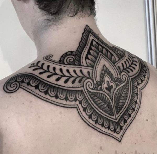 迷人的黑灰色曼陀罗图案纹身来自于纹身师曼纽尔