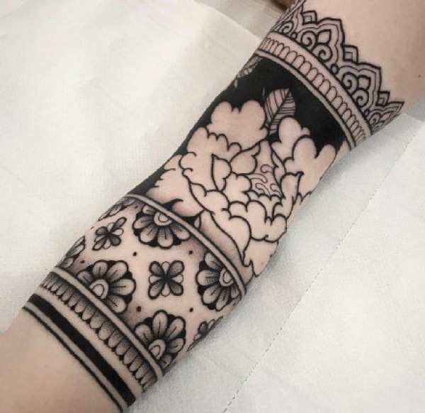 花臂手环黑色曼陀罗花纹身