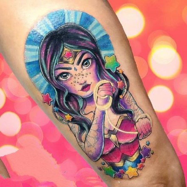 彩色日式漫画少女风格的纹身图案图片
