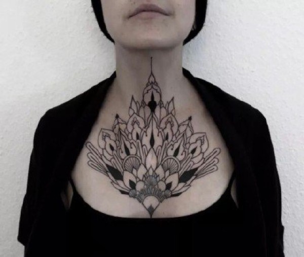 性感胸部纹身 9款女生别致优雅的胸下梵花纹身图案