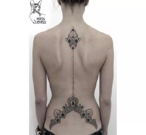 适合女生纹在后背脊柱处的唯美梵花纹身图案