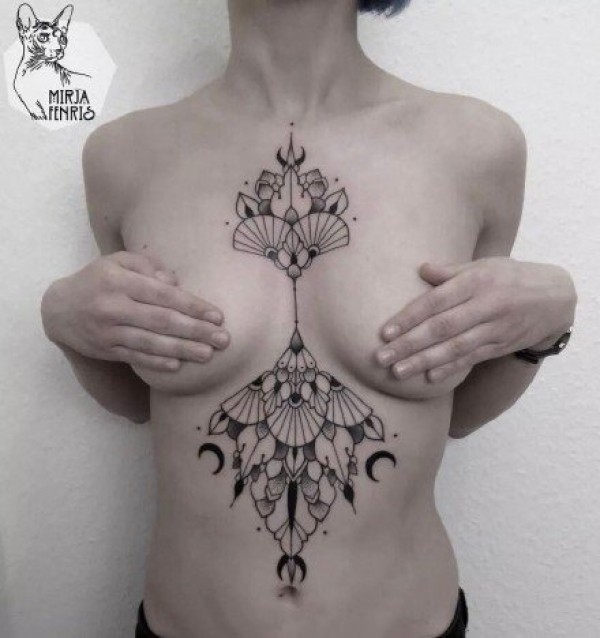 性感胸部纹身 9款女生别致优雅的胸下梵花纹身图案