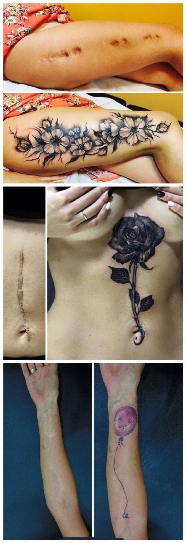 疤痕遮盖纹身--几张优秀的疤痕遮盖纹身图案案例作品欣赏
