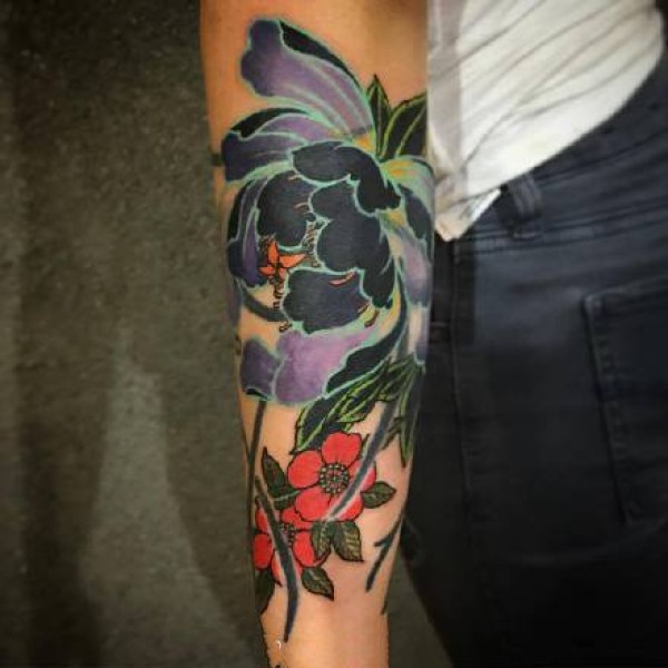 传统花卉纹身--一组手臂上的传统花朵纹身图案图片