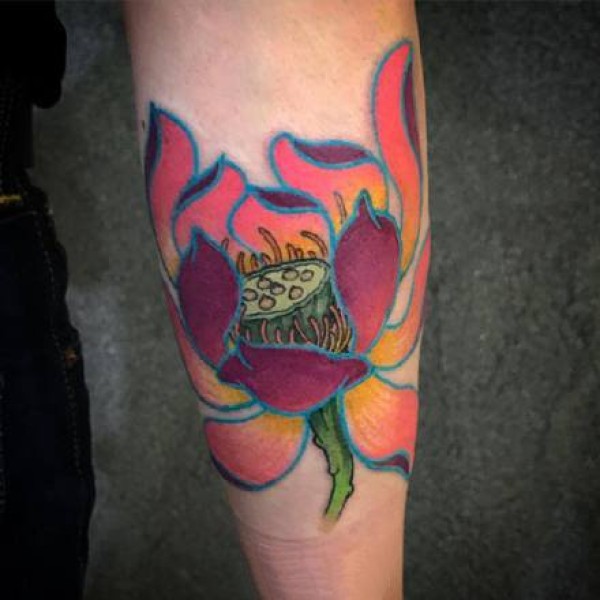 纹在手臂胳膊上的黑灰素花花卉纹身图案欣赏