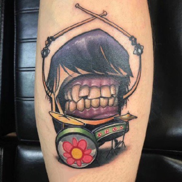 复古卡通红唇美女手臂纹身_卡通纹身图案大全_纹身图吧