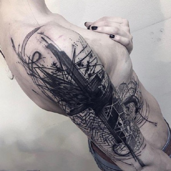 抽象水墨线条--几张黑灰抽象线条水墨纹身图案