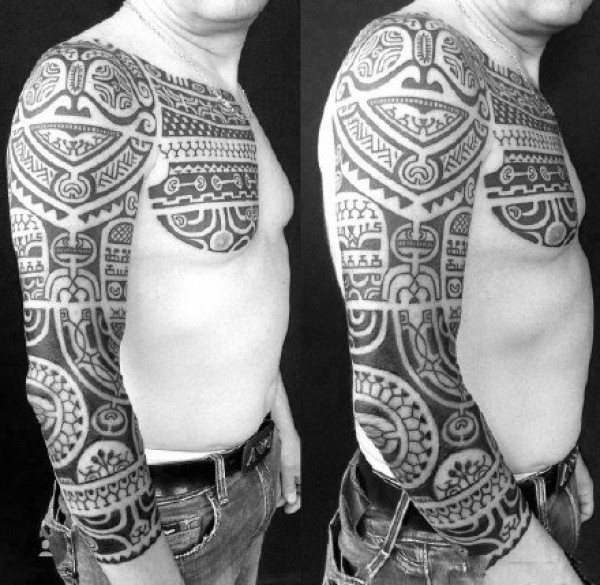 图腾大花臂--一组霸气的大黑灰男性花臂纹身图案