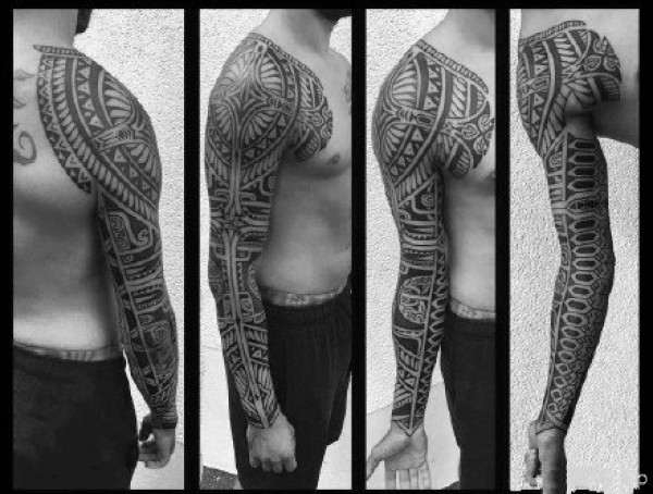 图腾大花臂--一组霸气的大黑灰男性花臂纹身图案