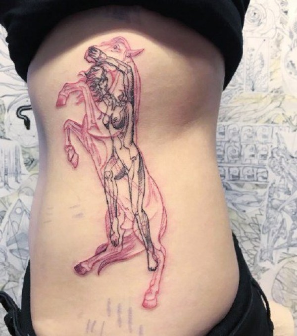 创意人兽合一线条纹身--加拿大纹身艺术家 Pablo Puentes纹身图案作品