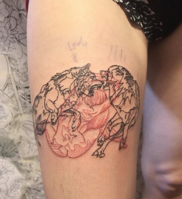 创意人兽合一线条纹身--加拿大纹身艺术家 Pablo Puentes纹身图案作品