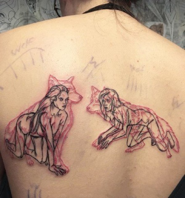 创意人兽合一线条纹身--加拿大纹身艺术家 Pablo Puentes纹身图案作品