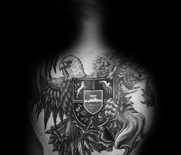 彩色老鹰纹身 男生胸部盾牌和老鹰纹身图片