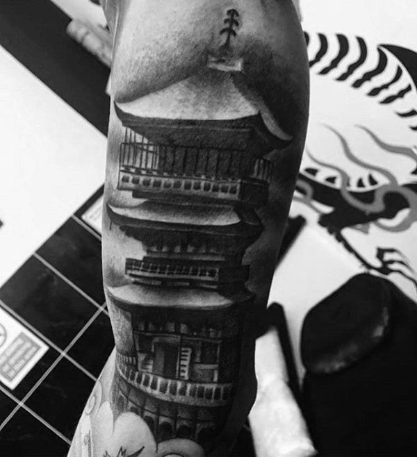 古塔纹身--9张中国风古代塔楼建筑纹身图案作品