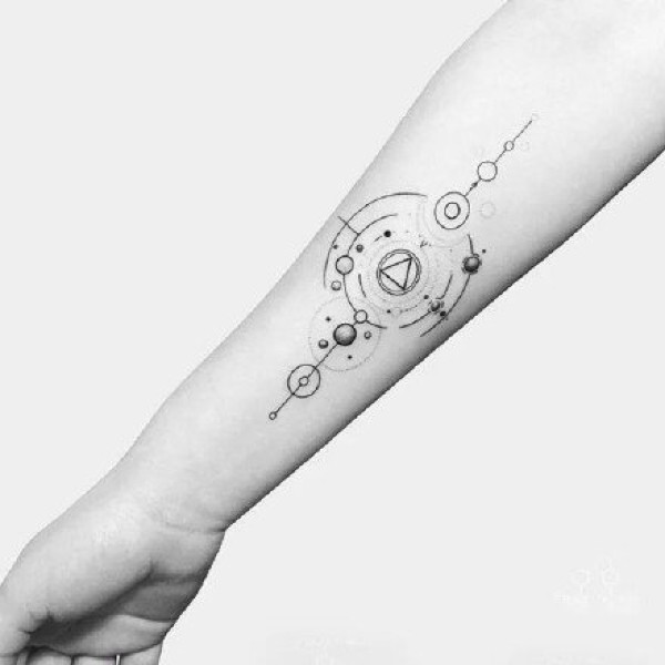 线条纹身--一组小臂内侧好看的线条几何纹身图案作品