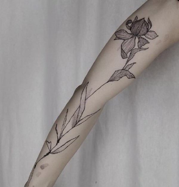 线条花草纹身--9张黑灰花草线条纹身图案图片