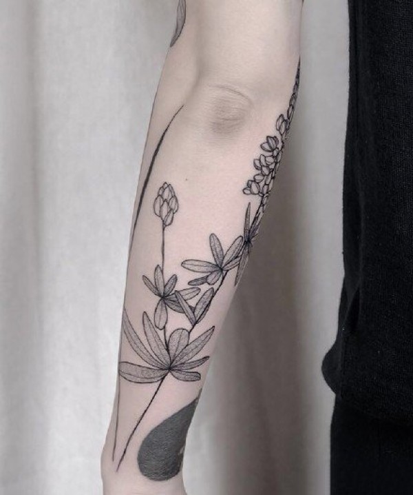 线条花草纹身--9张黑灰花草线条纹身图案图片