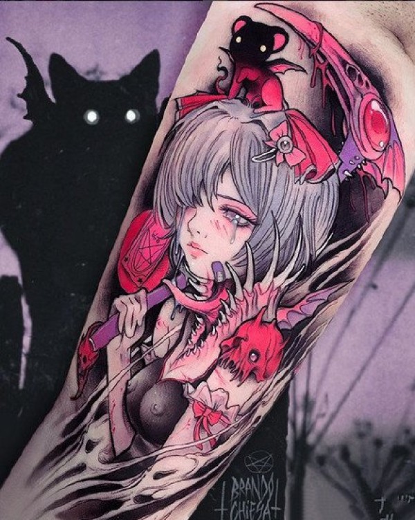 日漫纹身--一组颜色艳丽的日式漫画风格的纹身图案