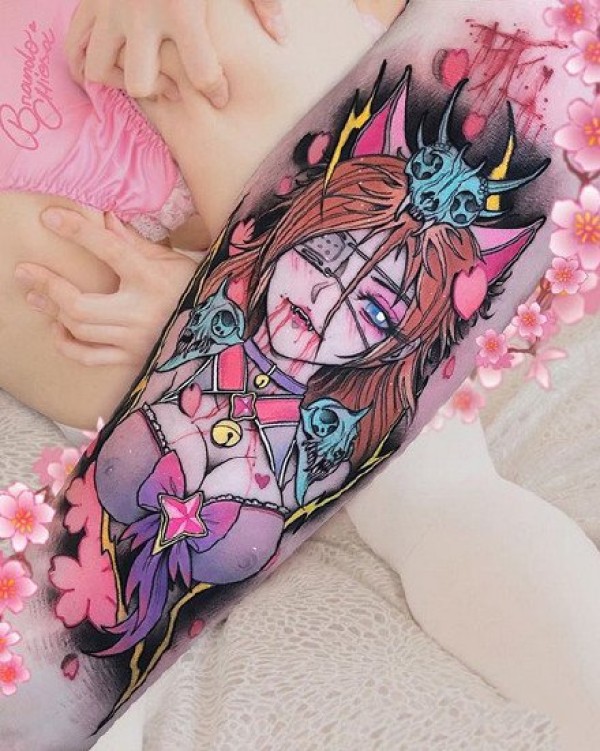日漫纹身--一组颜色艳丽的日式漫画风格的纹身图案