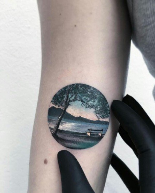 圆形风景纹身--几张几何圆形+风景纹身图案作品