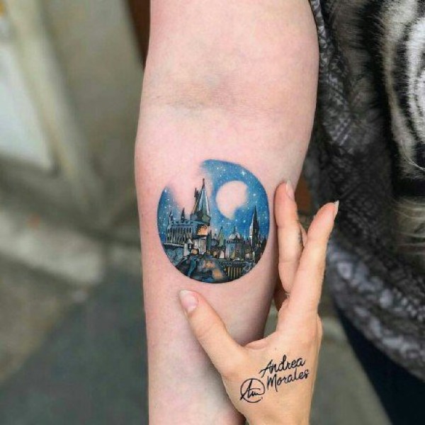 圆形风景纹身--几张几何圆形+风景纹身图案作品