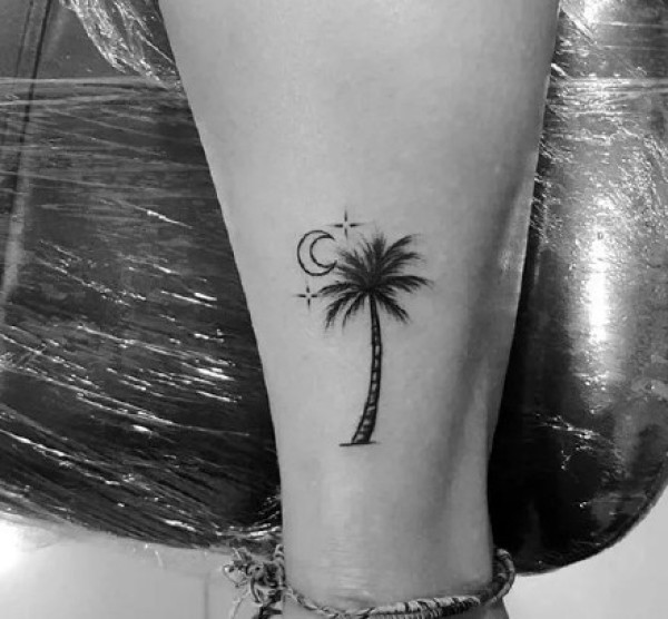脚腕上的小椰子树纹身图案