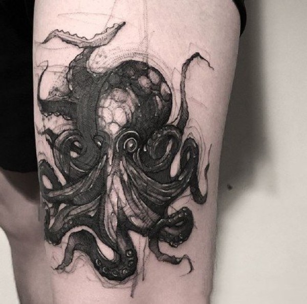 抽象笔触纹身--一组黑灰笔触抽象纹身图案作品欣赏