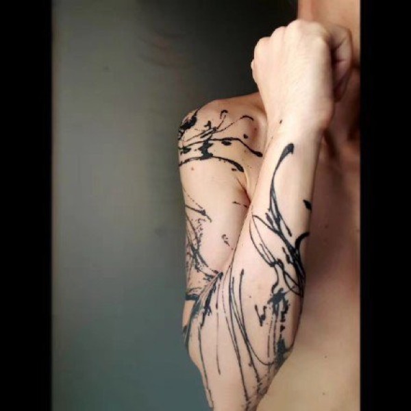 法国刺青艺术家alchemink sciences ink飘逸随性的水墨线条纹身