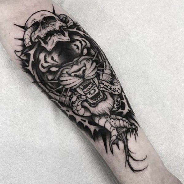 大黑灰newschool纹身--9张结合了点刺的黑灰newschool纹身图案