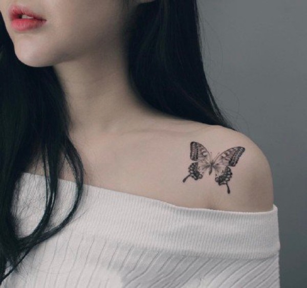 锁骨简约纹身_9张锁骨上的小清新简约黑灰纹身作品图案