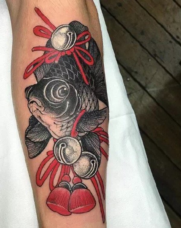 日本花腿纹身樱花纹身鲤鱼荷花粗线条纹身图片