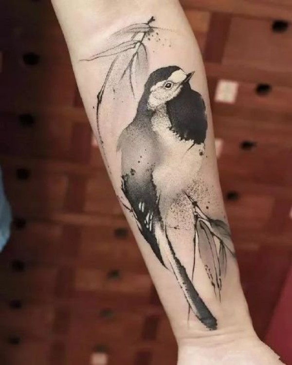 水墨画纹身--8张水墨画风的黑灰纹身图案图片