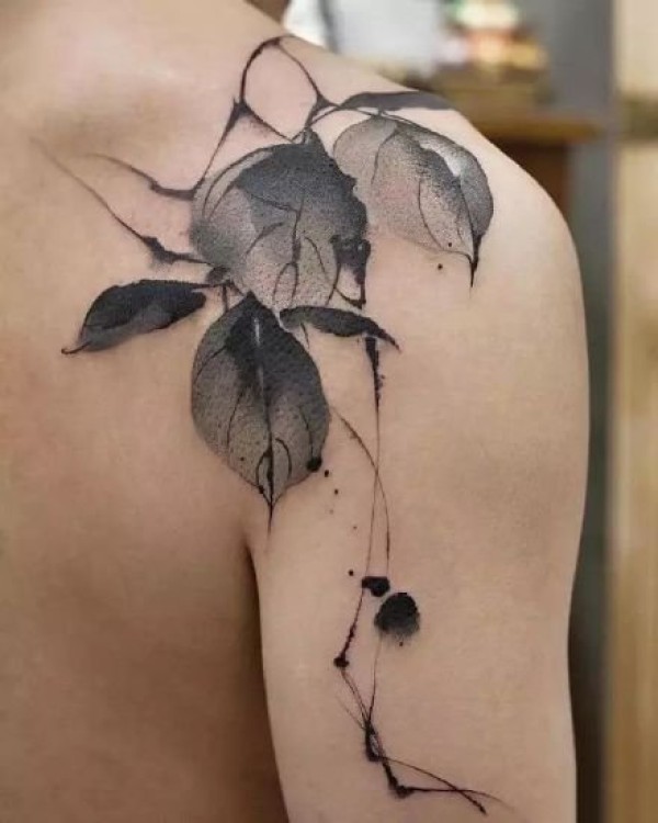 水墨画纹身--8张水墨画风的黑灰纹身图案图片