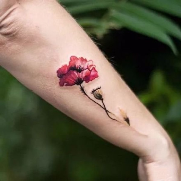 罂粟刺青:艳丽的一组红色罂粟花纹身图案