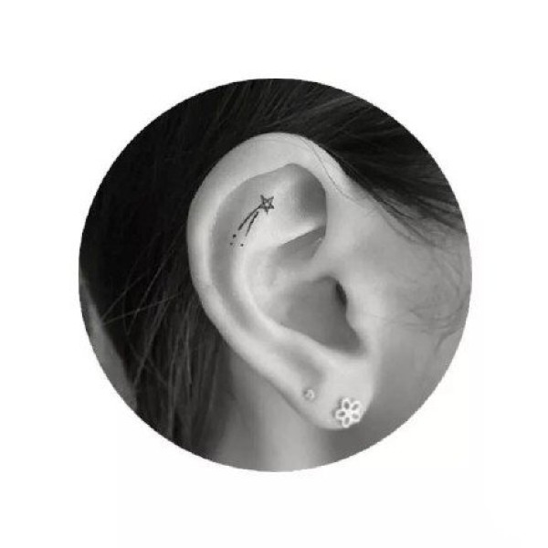 耳朵纹身--一组纹在耳朵里面的简约小清新纹身图案