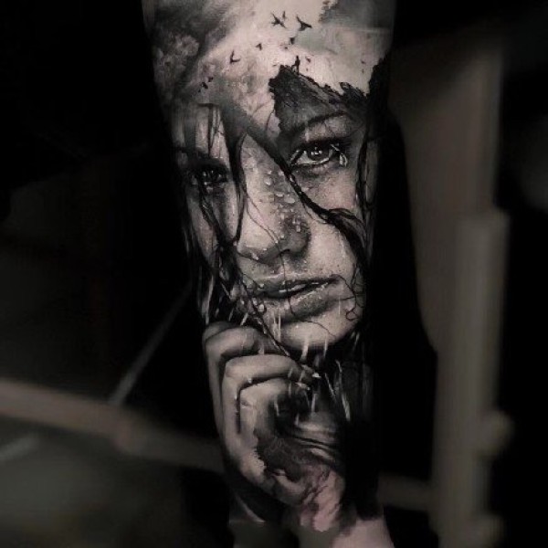 黑灰写实纹身--一组精品国外写实大黑灰人物肖像纹身图案