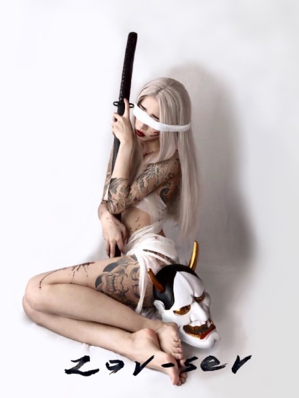日式纹身美女--日本风格拿武士刀的纹身美女摄影写真图片