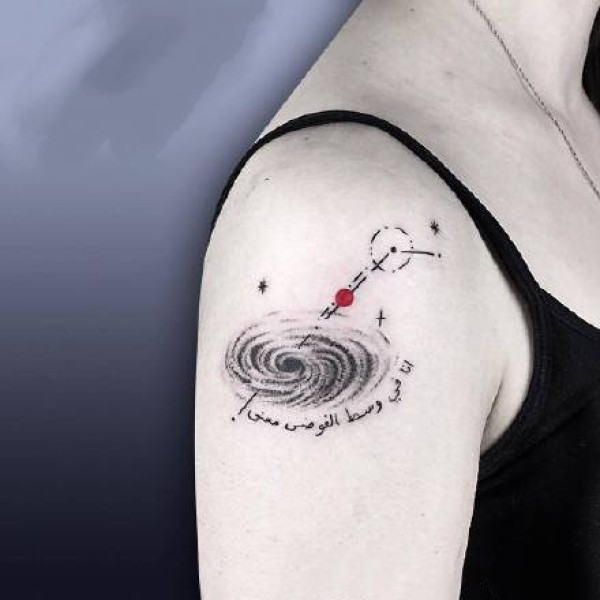 一组国外纹身师的小红点元素的红黑纹身图案作品