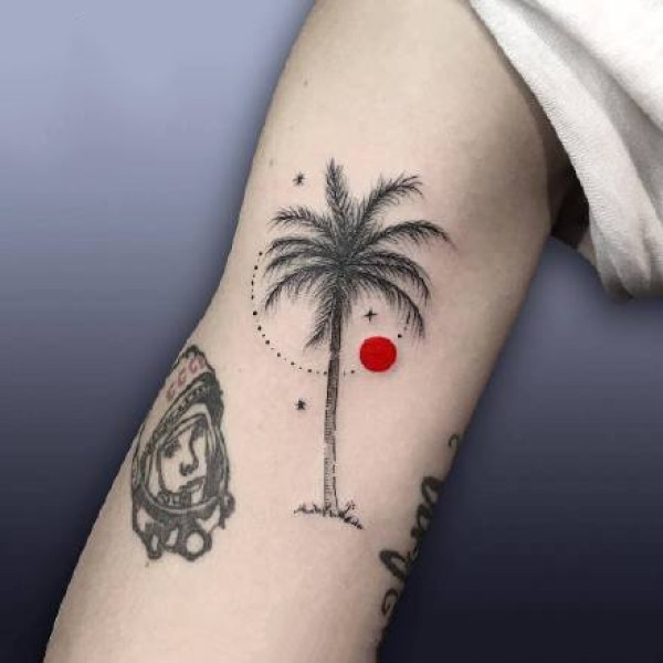 一组国外纹身师的小红点元素的红黑纹身图案作品