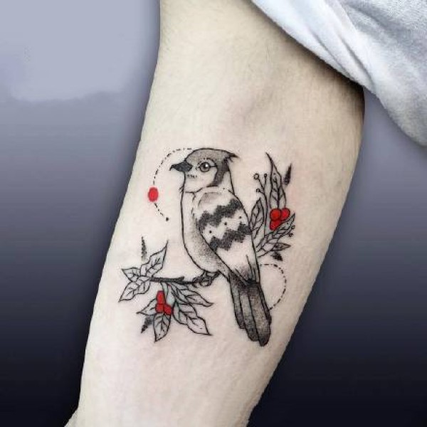 一组国外纹身师的小红点元素的红黑纹身图案作品