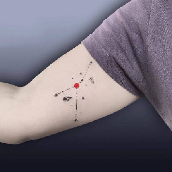 一组国外纹身师的小红点元素的红黑纹身图案作品