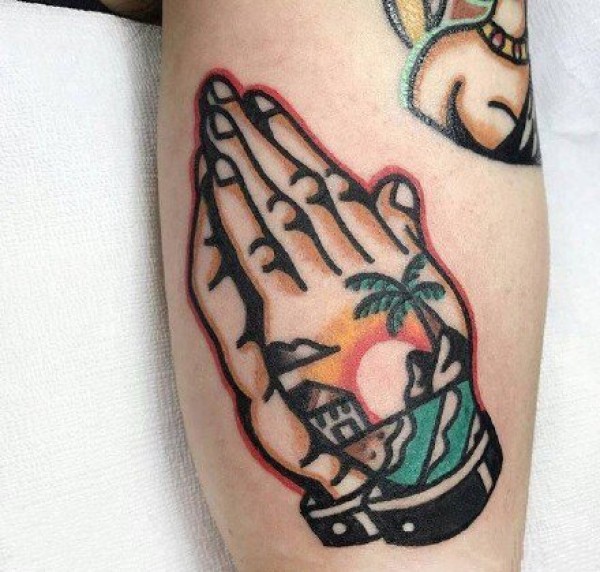 school风格的祈祷之手纹身图案作品