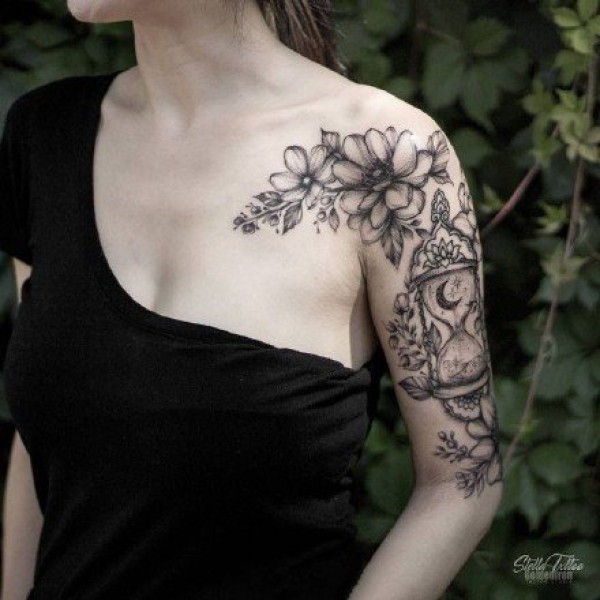 欧美花臂纹身_22张霸气黑灰欧美大黑花臂纹身图案作品图片