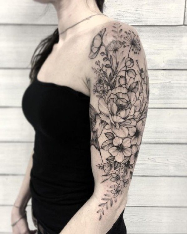 欧美花臂纹身_22张霸气黑灰欧美大黑花臂纹身图案作品图片