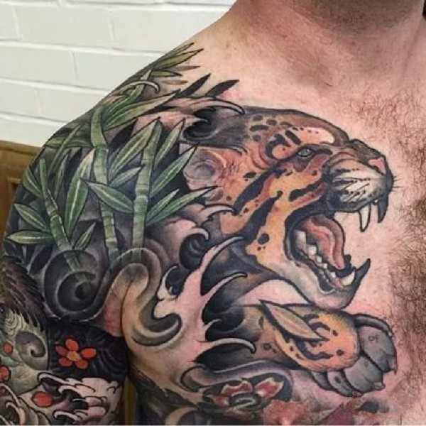男性们都喜欢这样帅气的凶猛的老虎纹身图案