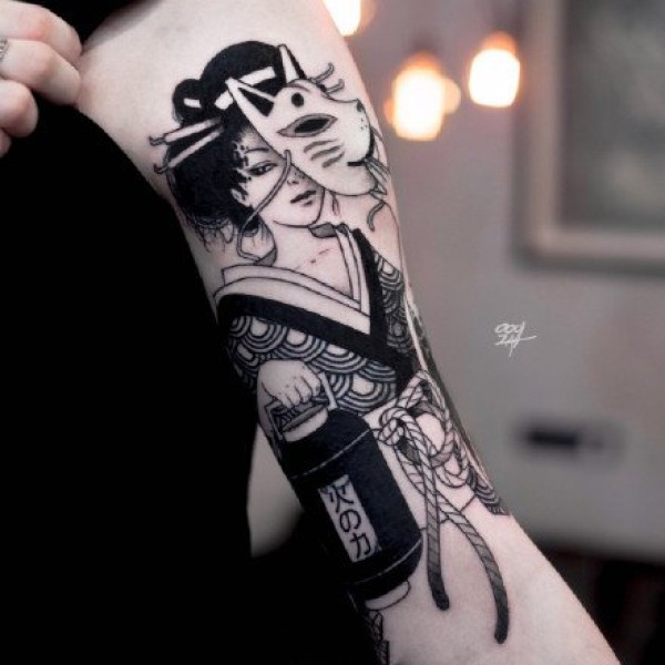 能面万媚纹身手稿_52张日式能剧面具纹身手稿图案素材欣赏